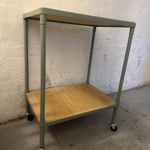 Flot rundt barbord med opbevaringsplads øverst og nederst i farven sort med hjul. Super fint til at stille i et hjørne, og med plads til mange forskellige flasker.