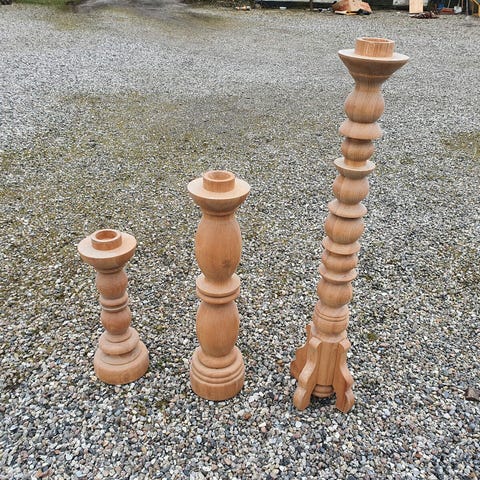 Trælysestage, Almue , Gammel stage, håndmalet blå- og guldmalet, højde 21 cm, diameter bund 10 cm , aldersrelateret brugspræg