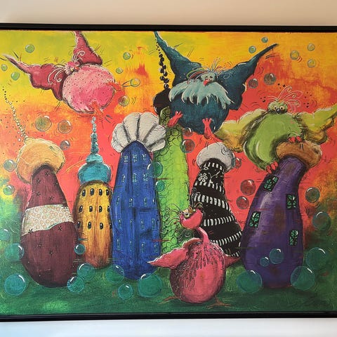 Abstrakt maleri sæt i ramme flerfarvet