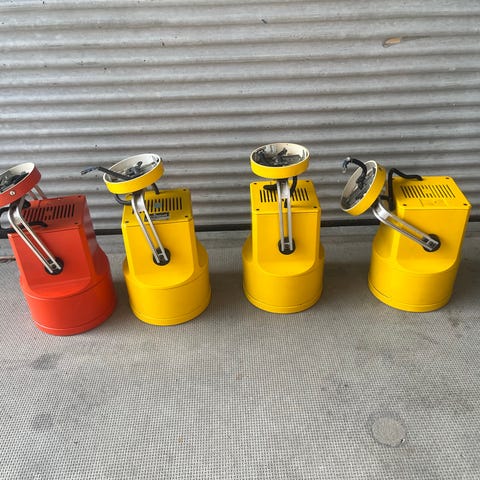 Der er tale om 3 vintage Louis Poulsen Unispot "Storebror" spotlight lamper fra 1970'erne. Lamperne har brugsspor, men det meste vil gå af med lidt kærlighed.