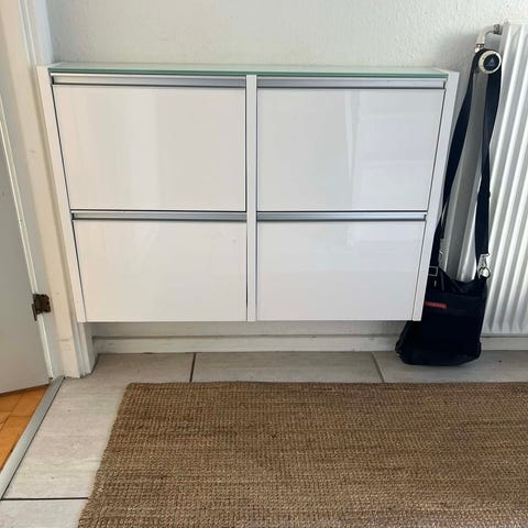 Sort skoskab fra IKEA med plads til to par sko i hver. Måler 52x18x39 cm.