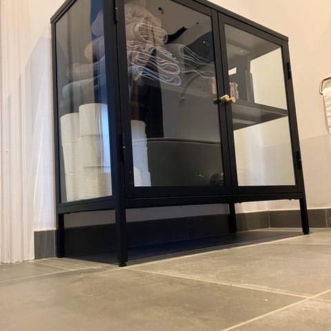 Vitrineskab med metalstel og glas