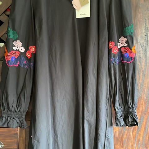 Helt ny kjole fra Nümpf i str 38. Der medfølger et bindebånd til at binde om livet. Det er lommer i kjolen og den er lidt længere bagpå. nypris 800kr