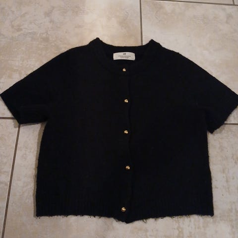 Cardigan H&M str. str. 146-152 lysegrå strikket cardigan. Akryl 65%, Polyamid 28%, Uld 5%, Elastan 2%. Pæn stand. Ann. nr. S1425
