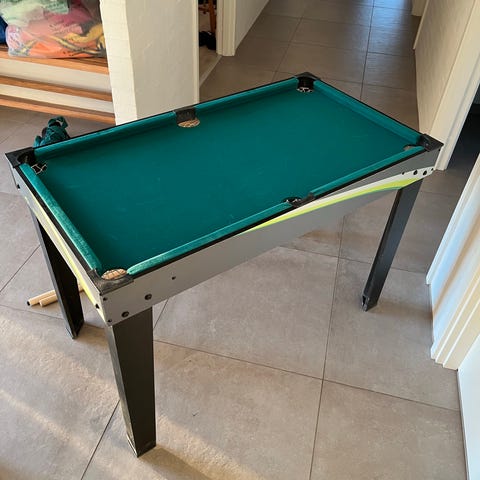Pool/billiard bord der kan bruges til bordtennis. Skal lige renses lidt for kridt men sælges ultra billigt da vi ikke har plads til det mere.
