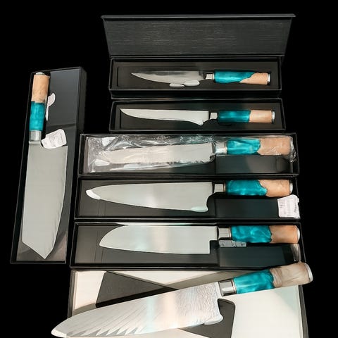 Hej jeg sælger denne knivsæt fra Damascus by Hâws, som jeg fik i gave fra mit arbejde. Men har ikke brug for dem.