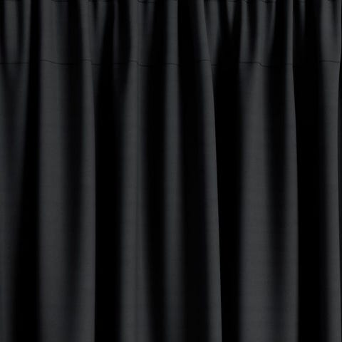 2 stk sorte mørklægningsgardiner. Trækkes ned i stang til højre.