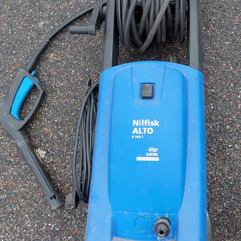 Jeg har "arvet" den. Selve højtryksdelen virker fint, men sprøjterøret med dyser virker ikke. Det sidder fast, kan ikke drejes og vandet kommer ud de forkerte steder. Så der skal nok et nyt til medmindre nogen selv kan reparere det.