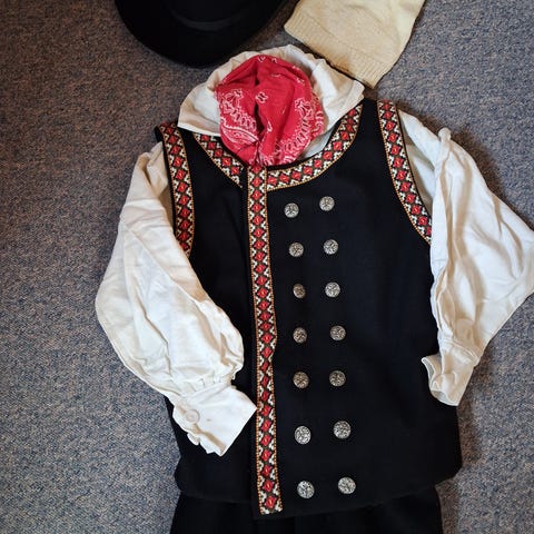 Børne Bunad / festdrakt sælges med lille taske. Mærket er “Små-Troll” og farven er blå. Næsten som ny. Bruges ved festlige norske traditionelle lejligheder som f.eks. 17. Maj.
