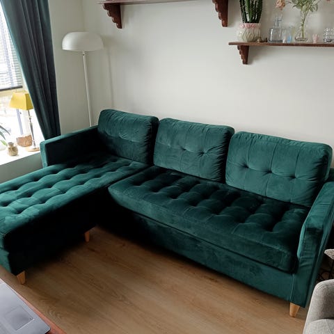 Meget smuk sofa , i flot mørkegrøn velour ...