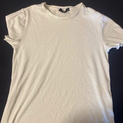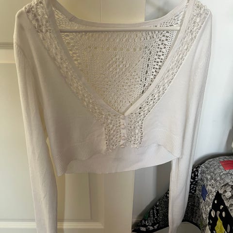 Shein sweater til kvinder i str. L. Sweateren er hvid og fremstillet i polyester. Den har ribstrikket struktur og en løs pasform. Halsudskæring, kant og sider har rå, flossede detaljer som en del af designet. Velegnet som casual overdel til hverdag.
