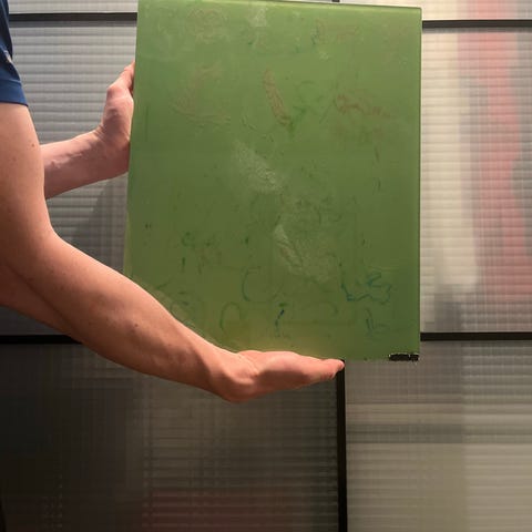 Magnettavle i lysegrønt glas fra Chatboard. Målene er 90x120 cm
