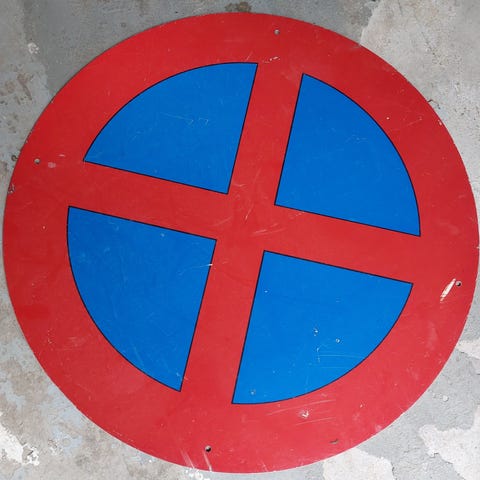 Trekantet vejtavle indsnævret vej metal 70 cm rød og hvid
