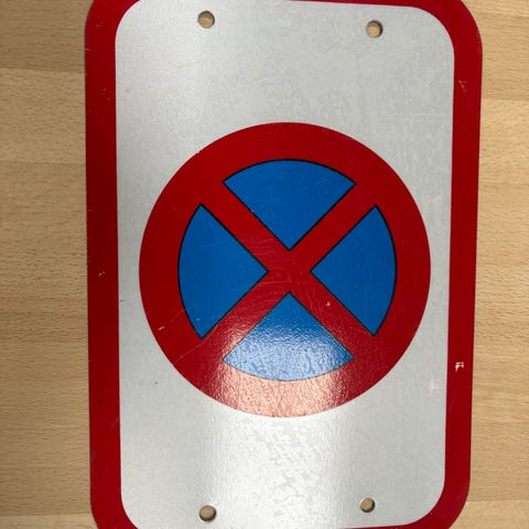 Trekantet vejtavle med symbol for indsnævret vej. Tavlen er fremstillet i metal og har rød kant med hvid baggrund og sort symbol. Bagsiden er gråmalet. Siden på trekanten måler ca. 70 cm. Egnet som dekoration, samlerobjekt eller til brug i miljøer, hvor en autentisk vejtavle ønskes. Tavlen har forborede huller til montering.