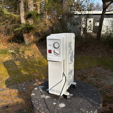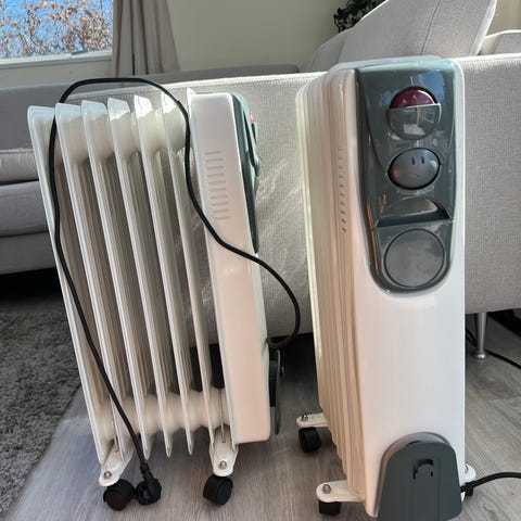 Adax olieradiator i sort. Flytbar gulvmodel med hjul, mekanisk termostat og flere effekttrin, der betjenes via kontakter og drejeknap på fronten. Radiatoren tilsluttes almindelig stikkontakt og er egnet til midlertidig eller supplerende opvarmning af indendørs rum.
