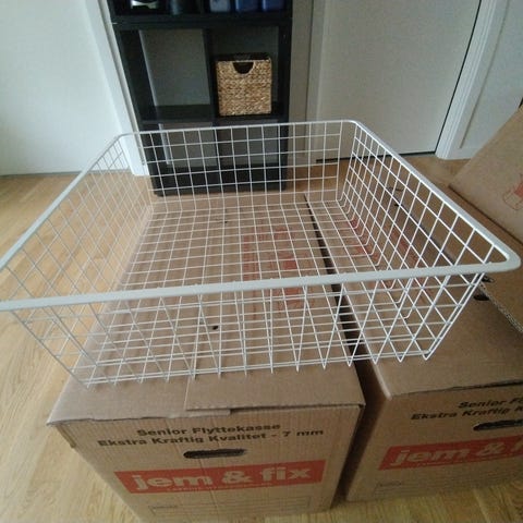 Der medfølger skinner og afstandsstykker, så den passer til skabet.