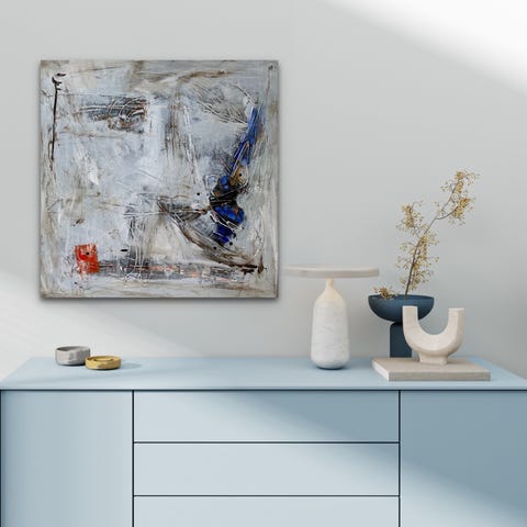Smukt og unikt abstrakt maleri med struktur, der skaber et moderne og stilrent udtryk. Motivet forestiller en abstrakt menneskefigur, hvilket giver billedet en kunstnerisk og rolig stemning.