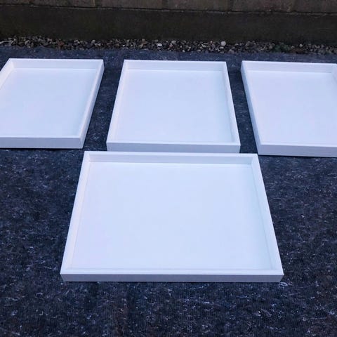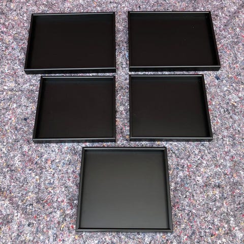 Produceret i 12mm MDF, der er lakeret med vandbaseret lak i farve 04 Anthracite. Bakkerne måler: