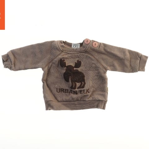 En langærmet trøje med et print af en elg og teksten 'WILD TRAIL' på forsiden. Trøjen har en lomme på det ene ærme.