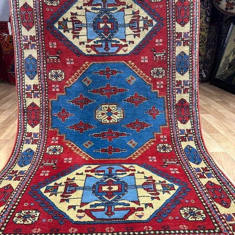 Traditionelt håndknyttet originalt tyrkisk naturligt Kars Kasak tæppe,
