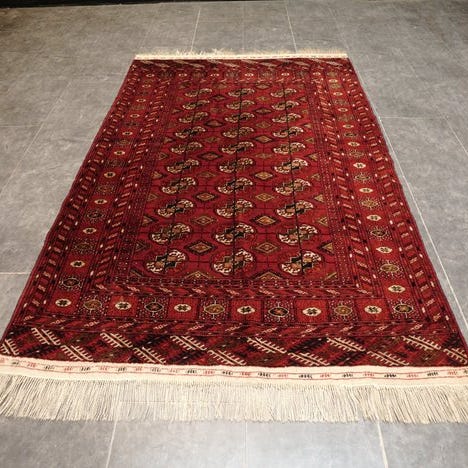 Originalt turkmensk tæppe fra Turkmenistan, model Originaler Turkmen, uld på bomuld, 300 cm × 212 cm, fremstillet i midten af det 20. århundrede, i meget god stand, ikke professionel rengøring, med ægthedscertifikater. Klik på den blå "gå til varen" knap, for at købe eller byde på denne vare. Den samlede pris vil blive vist inden du afgiver dit bud.