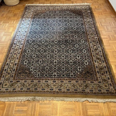Vær venlig at betragte tæppet med tålmodighed og opmærksomhed. Hvert håndlavet tæppe er unikt i sit mønster, skønhed og farveharmoni og derfor et kunstværk i sig selv.