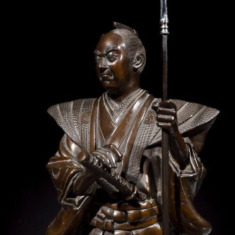 Indara Taishō, japansk trækstatue af De tolv Himmelens Generaler, signeret af Jiro Watanabe; højde 51,7 cm, bredde 19,5 cm, dybde 14,2 cm, vægt 2020 g, oprindelse Japan, i god stand med en lille revne. Klik på den blå "gå til varen" knap, for at købe eller byde på denne vare. Den samlede pris vil blive vist inden du afgiver dit bud.