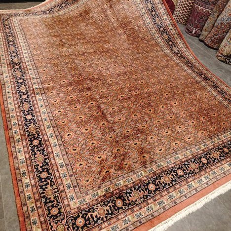 Håndvokset orientalsk tæppe fra Indien i Tabriz-stil, uld på bomuld, størrelse 350 × 240 cm, dateret til seneste del af det 20. århundrede, i god stand, med ægthedscertifikat. Klik på den blå "gå til varen" knap, for at købe eller byde på denne vare. Den samlede pris vil blive vist inden du afgiver dit bud.