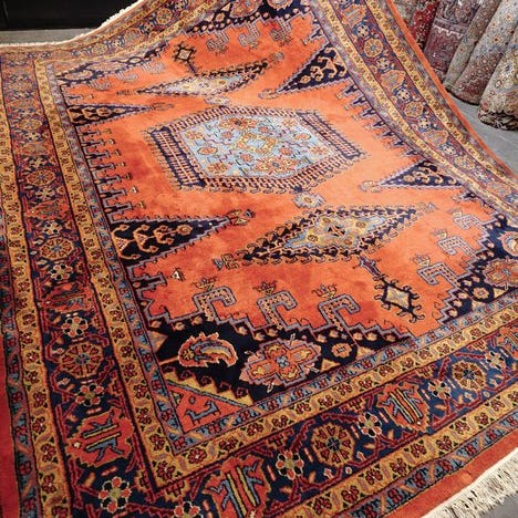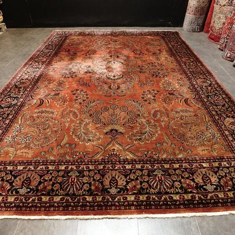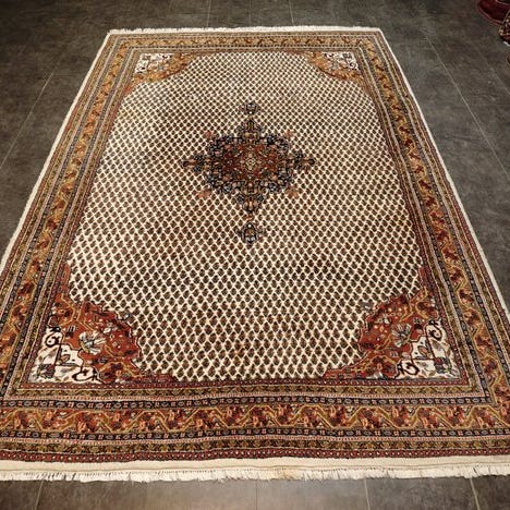 Håndvævet Sarough-tæppe fra Indien, model Sarough, måler 380 x 301 cm, uld på bomuld med 100% nyseelandsk uld i knolden og 100% bomuld i tråden, dateret slutningen af det 20. århundrede, i særdeles god stand, professionelt rengjort og med ægthedscertifikat. Klik på den blå "gå til varen" knap, for at købe eller byde på denne vare. Den samlede pris vil blive vist inden du afgiver dit bud.