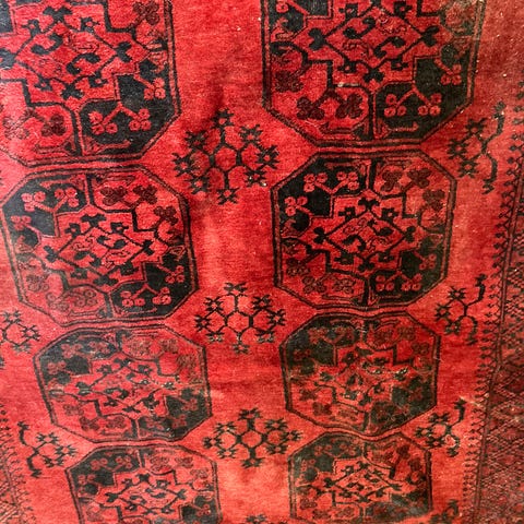 Dette tæppe er fra Afghanistan og er i meget god stand. Farverne er naturligt farvede, mængden af uld er ensartet over hele tæppet, og tæppet har ingen slitage eller huller.