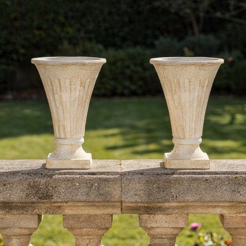 2 keramiske halvrunde vægplanter med Aged Ceramic-print. Volumen: 1,2 liter. Der er to huller i bagpanelet til at hænge vægplanteren op med skruer.