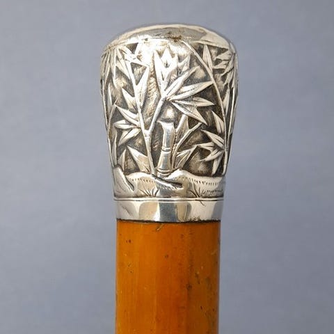 Shakujō af træ og tin, 52,6 cm høj, 6,0 cm bred, 5,2 cm dyb, vægt 263 g, oprindelse Japan, anslået periode 1950–2000, i god stand med slid og aldersmærker. Klik på den blå "gå til varen" knap, for at købe eller byde på denne vare. Den samlede pris vil blive vist inden du afgiver dit bud.