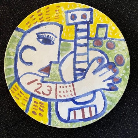 En moderne ancienker keramisk reliefflade fra 1960’erne, ca. 35 × 35,5 cm og 3668 g tung, dekoreret med polykrome emaljer i relief og afbildende to heste, bagsiden mærket Schäffenecker Ulm; i god stand med mindre slid. Klik på den blå "gå til varen" knap, for at købe eller byde på denne vare. Den samlede pris vil blive vist inden du afgiver dit bud.