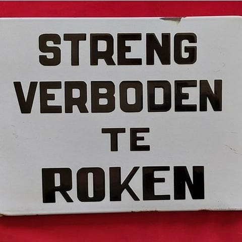 Beskrivelse : Skilt i porcelæns- / emailleret skilt, stencileret, 1970'ernes version