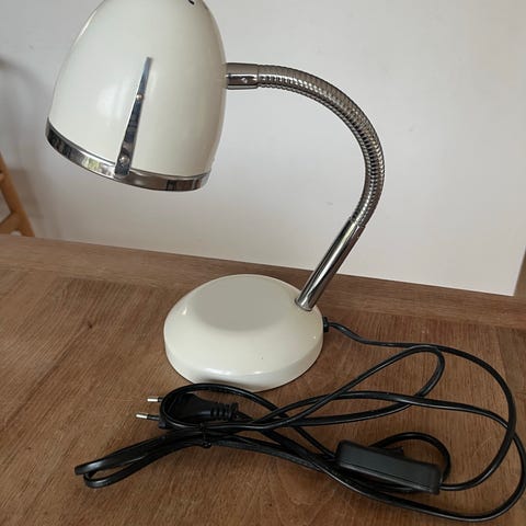 Flot Bordlampe fra Abson i stål og I Creme Farver. Virker som den skal, stadigvæk lys I pære og I flot stand. God belysning.