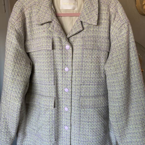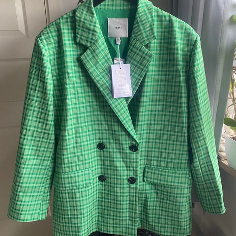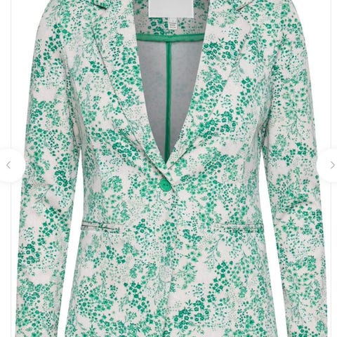 InWear jakke til kvinder i str. 44. Jakken er grøn og flødefarvet. Den er fremstillet primært i polyester. Den har krave, frontlukning med knapper og to forlommer. Pasformen er kort og lige med lange ærmer og slidsdetalje ved ærmekanterne. Materialesammensætningen består overvejende af polyester med blanding af andre fibre i yderstoffet samt polyesterfyld og polyester/elastan i foret. Egnet som let overgangsjakke eller til lag-på-lag brug i hverdagen. Jakken er ny og stadig med tags på. Ny pris kr 1300,-.