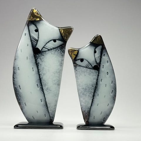 Gør et markant statement med dette enestående sæt af håndlavede glas-kameleoner – virkelig iøjnefaldende, samleroplevelse-værdige stykker, der fascinerer med deres form, farve og subtile skønhed.