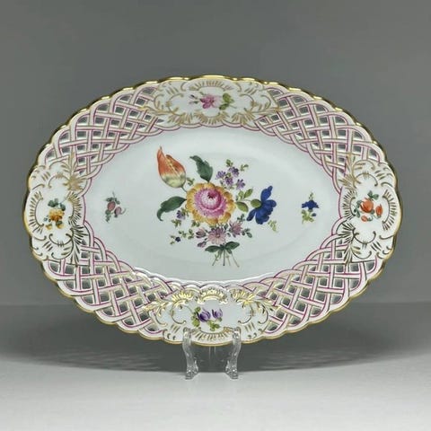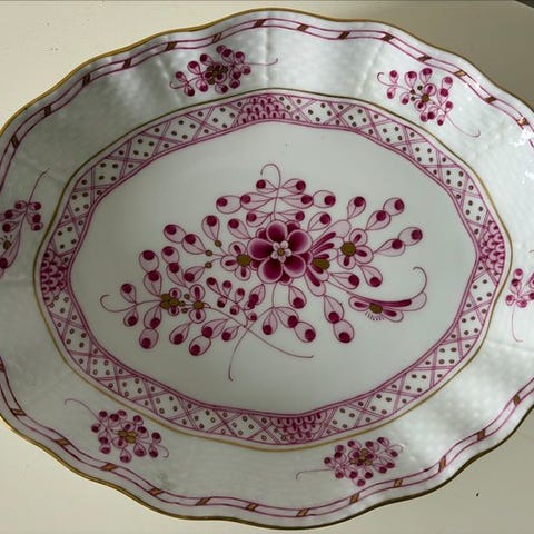 Smuk og sjælden vintage ungarsk Herend Chinese Bouquet Apponyi Pink Raspberry porcelæns større serveringsfad/skål nr. 7501/AP. Fremragende fund for samlere.