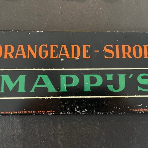 Vintage metalreklameskilt fra Brouwerij Vermeulen med markant rød baggrund og karakteristiske gotiske bogstaver. Denne type skilt er i dag svært at få fat i og derfor eftertragtet blandt samlere af bryggerireklame og reklamegenstande.