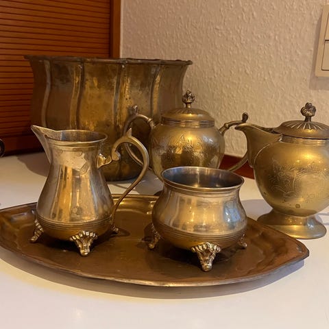 Elegantt sæt i tin bestående af 7 dele, der omfatter :