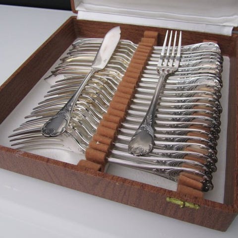 Christofle bestikssæt “Marly” – 48 dele – sølvbelagt metal – restaureret æske