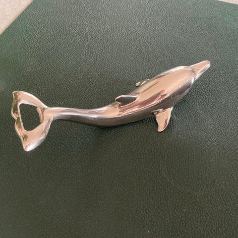 Flaskepropåbner i sølvbelagt metal dateret til 1950'erne/1960'erne, fremstillet af firmaet BMF i Vesttyskland. Meget sjælden for samlere af enestående objekter.
