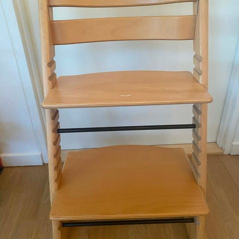BabyDan børnestol i træ med justerbar siddeplade og fodplade. Højstolen er egnet til børn og kan bruges ved spisebord eller som siddestol i hjemmet. Designet giver mulighed for at tilpasse stolen efter barnets højde og behov, så den kan bruges over en længere periode. Mobiltlf: 40556018