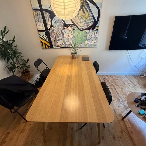 Sælger dette hjemmelavede spisebord. Helt fin stand. Kan godt være lidt ustabilt, men der skal nok bare en ekstra skrue i, i bunden ☺️