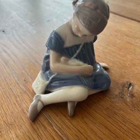 Royal Copenhagen figur 4027 porcelænsfigur pige siddende på sten
