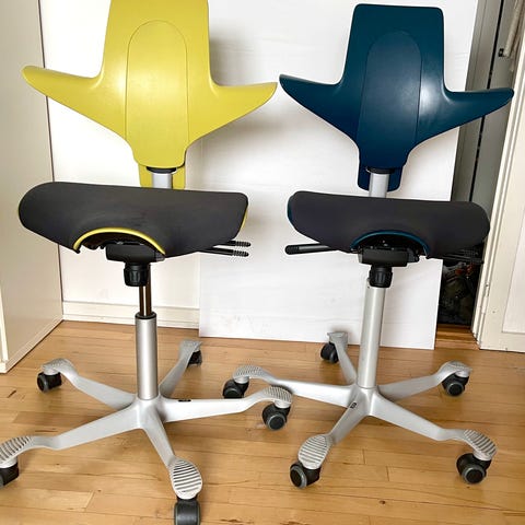 Stolen er med bløde hjul, som ikke ridser hårde gulve, og standard højde gaspatron.