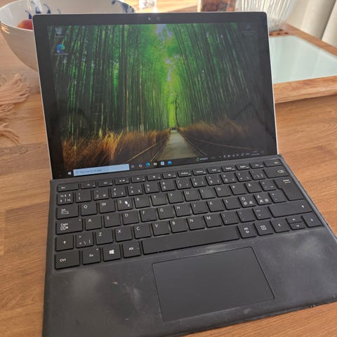 Intel i5 6300 2.4Ghz, 238GB harddisk, 8 GB ram. Touchskærm, belyst aftageligt keyboard. Original oplader medfølger. Batteriet holder ikke ret længe.