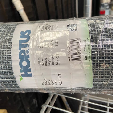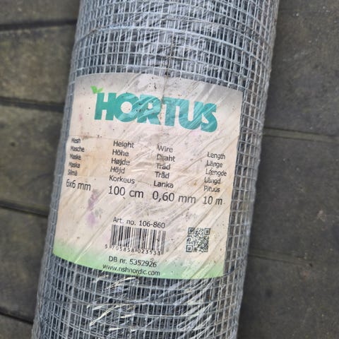 Hortus voliernet til mus og rotter i galvaniseret stål. Rullen måler ca. 60 cm i højde og 5 m i længde med en trådtykkelse på 1 mm. Nettet er egnet til indhegning og sikring mod små gnavere, fx omkring bygninger, volierer eller andre konstruktioner, hvor der ønskes et tæt og robust metalnet.
