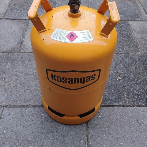 11 kg fyldt og plomberet gasflaske fra Kosangas / Primagaz som er lige klar til brug -flere haves