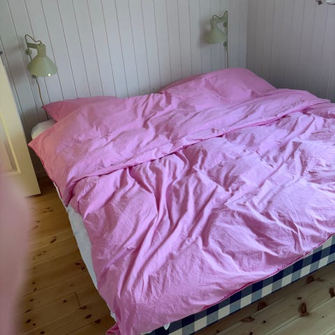 Hästens seng med blåternet betræk